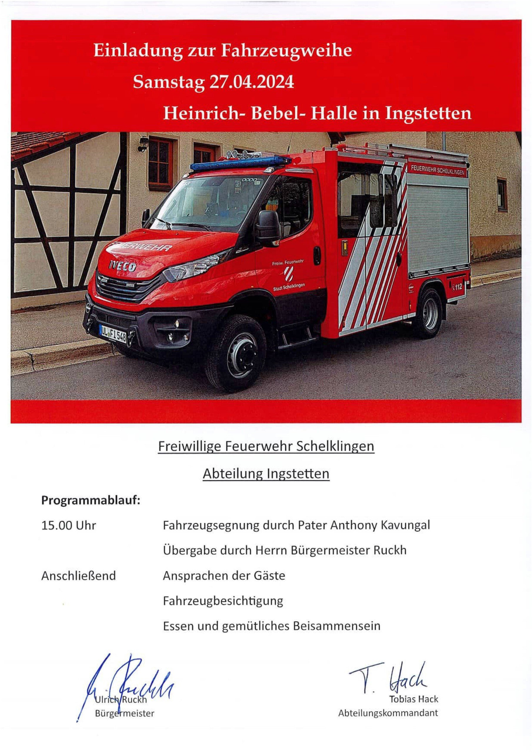 « Alle Veranstaltungen Diese Veranstaltung hat bereits stattgefunden. TSF-W_Fahrzeugweihe Schelklingen-Ingstetten 27. April 2024 um 15:00 « KFV Delegiertenversammlung 2024 Fw Hütten Maifest in Teuringshofen » Zum Kalender hinzufügen Google Kalender iCalendar Outlook 365 Outlook Live Details Datum: 27. April 2024 Zeit: 15:00 Veranstaltungskategorie: Feuerwehren Veranstalter Feuerwehr Schelklingen Telefon 07384 384 E-Mail *protected email* Veranstalter-Website anzeigen Veranstaltungsort Heinrich-Hebel-Halle Ingstetten Am Sportplatz 3 89601 Schelklingen, BW Deutschland